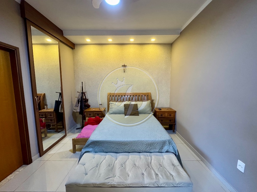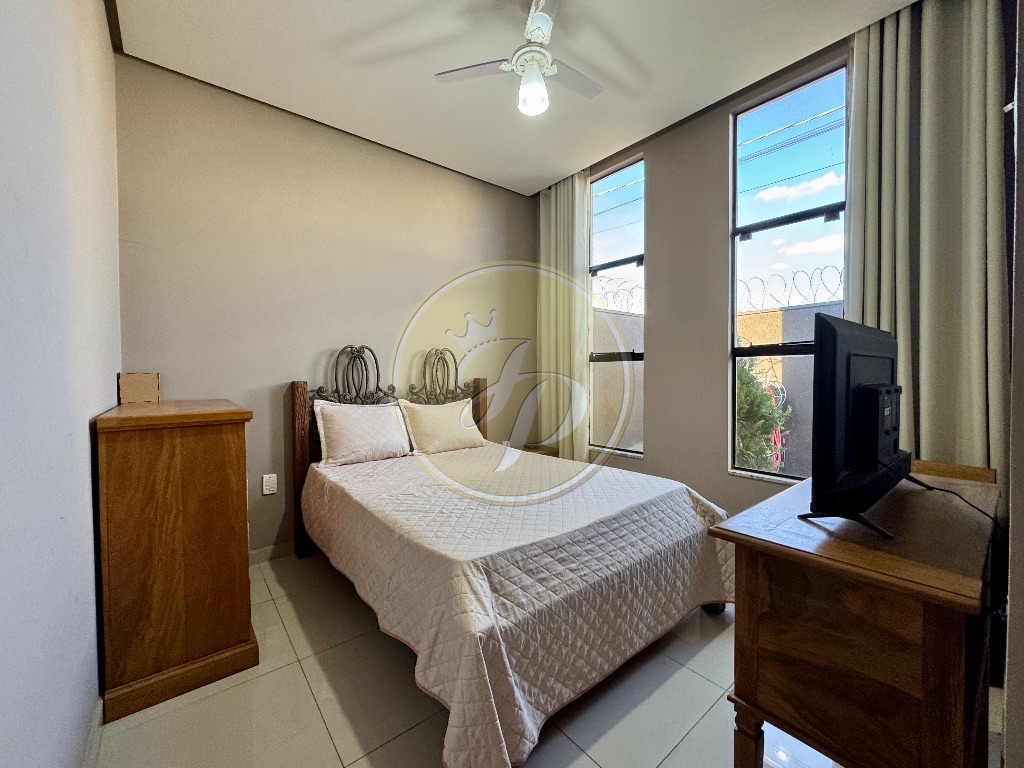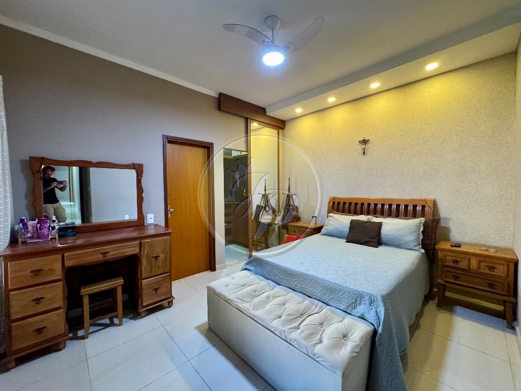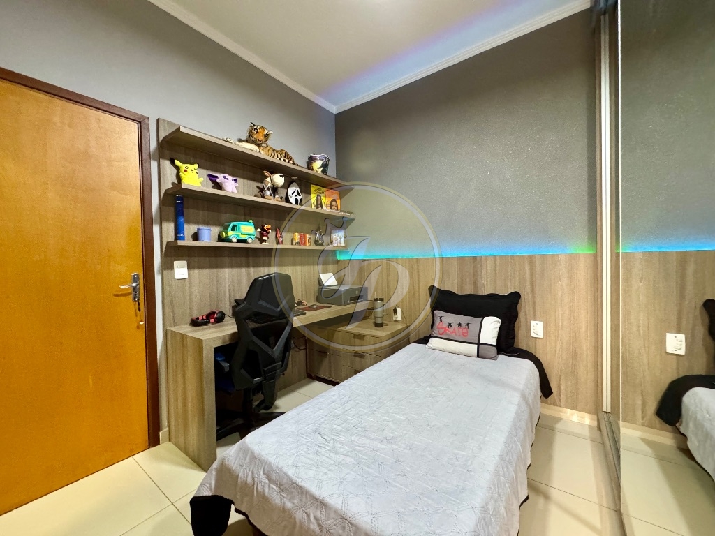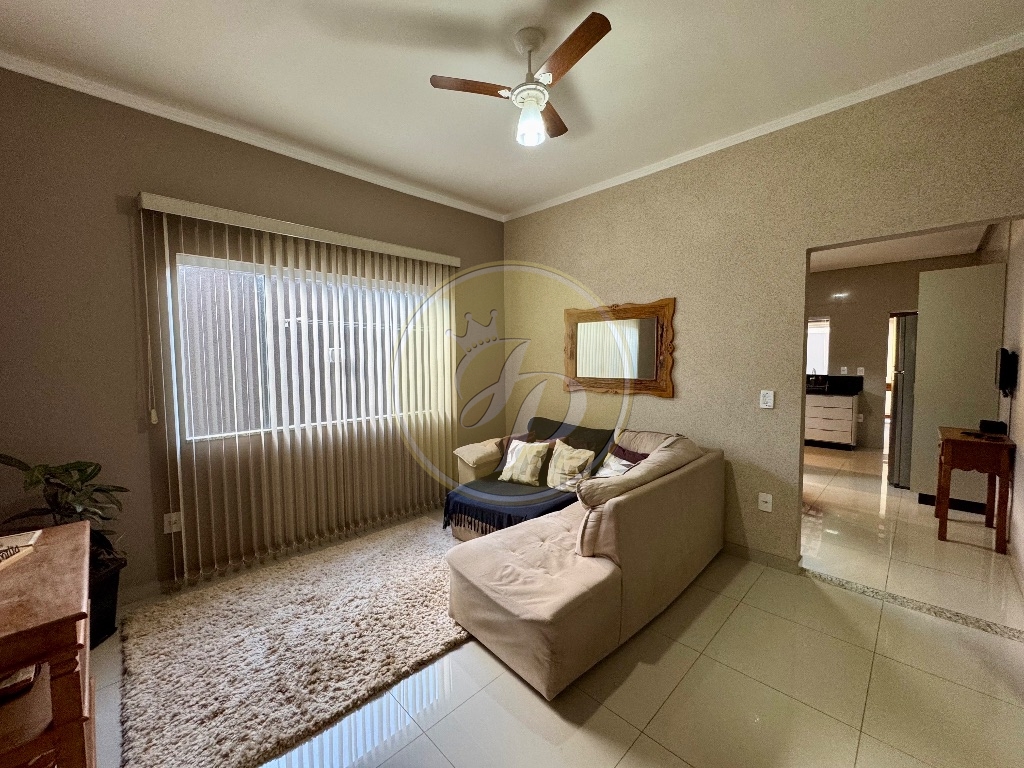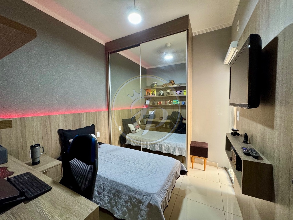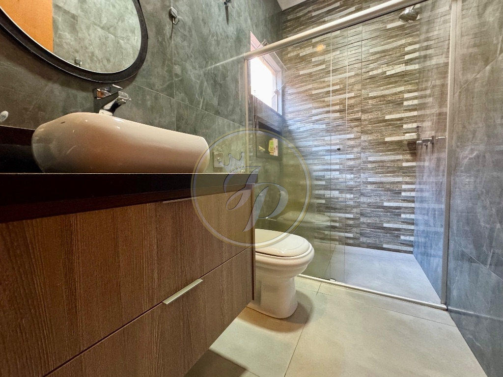3 quartos sendo 2 suítes com armários, sala de TV, sala de jantar, cozinha planejada, banheiro social, lavanderia, espaço gourmet com churrasqueira, piscina com cascata, e garagem para 2 carros.
